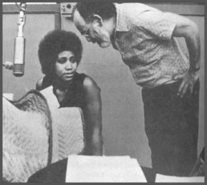 In February 1967, Jerry Wexler,(above) the Atlantic producer came to record Aretha's first session which was to produce the classic "I Never Loved A Man (the way I love you)". Although Aretha had found the song and played it on the piano to the rhythm section. The song was hinged around the piano, and the vocal tied the song together. This session was in fact to record her first complete album, the studio was booked for a week. The session also came up with what was to be the flip-side "Do right Woman-Do Right Man" by Dan Penn & Chips Moman, a week later in New York, Carolyn & Erma put on the vocals with Aretha, who also played organ and piano. After the first day's session, they were on the plane heading back to New York. Many versions of the story exist but it would appear that Ted White, Aretha's husband was upset with a member of the horn section who he accused of making a pass at Aretha. This caused an upset, and despite Rick Hall sacking the musician, the session collapsed. Aretha was not to record there again. Jerry Wexler had what was to be a soul master piece in the bag, together with a half finished 'B' side, to take back to New York. Jerry was very excited and had some acetates cut from the tapes, he played it to all the black DJ's that he knew, the reaction was incredible.