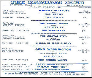 Original flyer from 1967 for the Ramjam Club in Brixton, London, note the entrance prices!!!